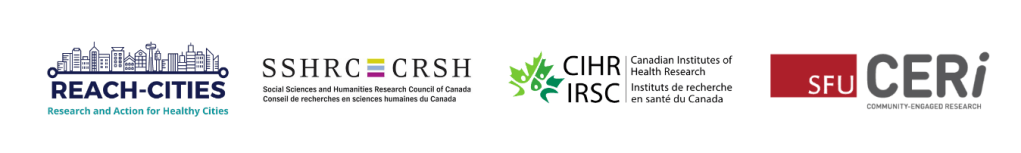 The REACH-Cities researchers are leading this study in collaboration with the City of Surrey and SFU Surrey. This work is funded through the Canadian Institutes of Health Research/ Public Health Agency of Canada Applied Public Health Chair Program, the Social Sciences and Humanities Research Council, and SFU’s Community-Engaged Research Initiative (CERi).