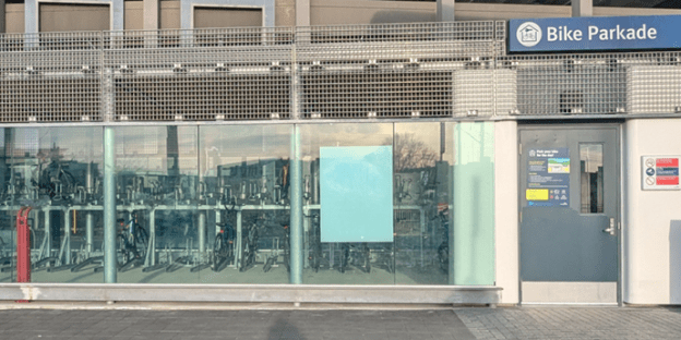 Access to major transit hubs or stations is often met by feeder buses that may be crowded and infrequent. Cycling is gaining interest as a more flexible and convenient mode to bridge this “first and last mile” gap. In addition to connected and comfortable cycling infrastructure, successfully integrating cycling with transit is further supported by having secure bicycle parking at stations.